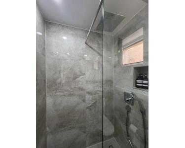 *Luxus-Fliesen der Marke DecoVita im Badezimmer in Marmoroptik*