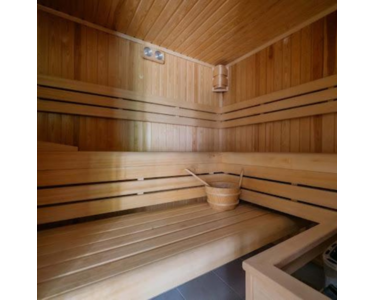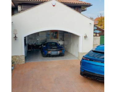 Außerdem verfügt das Haus über einen separaten Wellnessbereich (Sauna, Jacuzzi, Bar, Fitnessmöglichkeit) und eine integrierte Garage mit direktem Zugang zum Innenraum.