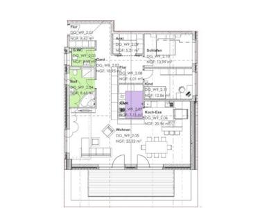 Eine hochwertige Einbauküche ist bereits vorhanden und fügt sich perfekt in das offene Wohnkonzept ein.