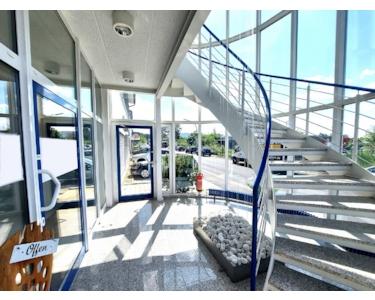 In zwei durch einen spiegelverglasten Verbindungsbau zusammenhängenden Bürokomplexen, modern und hochwertig ausgestattet, stehen Ihnen über zwei Etagen Büro- und/oder Praxisräume teilbar ab 20 m² bis 450 m² zur Verfügung. Büroräume können individuell nach Ihrem Flächenbedarf aufgeteilt werden. Kleinere Büroeinheiten sind ebenfalls möglich. Zur Ausstattung der Räumlichkeiten gehören u.a. bodentiefe Fenster mit Außenjalousien, getrennte Damen- und Herren-Sanitäranlagen, Teeküche und ein Serverraum. Die Räumlichkeiten sind teils mit Teppichböden, teils mit Fliesen ausgestattet. Die innovative Haustechnik bietet ein 3-Kreis-System (Heizen/Kühlen), Designerlampen mit optimaler Beleuchtung sowie Doppelböden. Zum Objekt gehörige Stellplätze befinden sich direkt vor dem Gebäude.