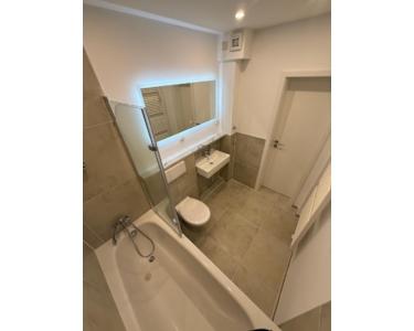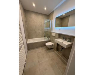Das Badezimmer präsentiert sich in modernem Design und wurde erneuert.