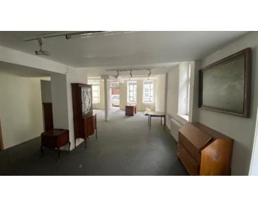 Die Einheit im Erdgeschoss wurde bisher gewerblich genutzt, bietet jedoch aufgrund der Raumaufteilung hervorragende Möglichkeiten für den Umbau zu einer großzügigen Wohnung. Aktuell unterteilt in Wohn- und Schlafzimmer, Küche, Bad sowie Abstellraum, kann sie alternativ problemlos weiterhin als Laden- oder Büroraum dienen – inklusive Lagerfläche und separatem Büro. Eine Renovierung, insbesondere die Fertigstellung des Sanitärbereichs, steht hier noch an. Wohnung im Obergeschoss mit Dachterrasse (ca. 80 m² auf zwei Ebenen)