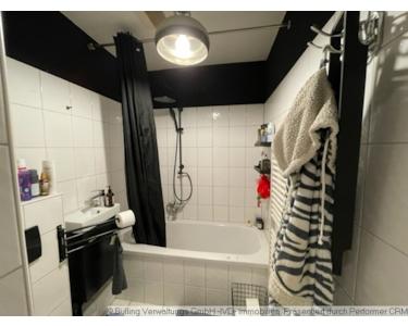 Die Wohnung ist mit einem offenen Kamin im Wohnzimmer, 2 weitern Zimmern, einer Wohnküche, einem G-WC und einem Bad mit Badewanne ohne Fenster ausgestattet.