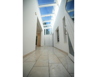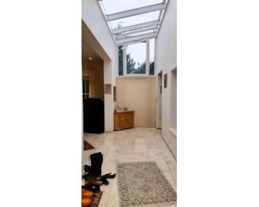 Das Haus bietet lichtdurchflutete Wohnbereiche, beeindruckende Raumhöhen in Teilbereichen sowie ein Wohnambiente, das sowohl modern als auch behaglich ist. Besonders hervorzuheben sind beispielsweise die eleganten Marmorböden im Anbau, teilweise ergänzt durch eine angenehme Fußbodenheizung. Ein überdachter Glasgang verbindet die Gebäudeteile miteinander und bietet abends einen faszinierenden Blick in den Sternenhimmel.
