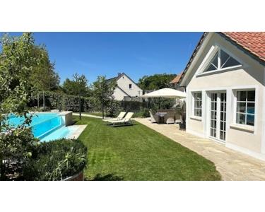 Im weitläufigen Garten wartet ein grünes Paradies – liebevoll gepflegt und perfekt für entspannte Stunden im Freien. Der beheizte Infinity-Pool bringt Erfrischung und Urlaubsgefühl direkt nach Hause, während die große Terrasse zum verlängerten Wohnzimmer im Sommer wird. Ob Frühstück mit Vogelgezwitscher oder ein Abendessen unter dem Sternenhimmel – hier entstehen Erinnerungen, die bleiben.
