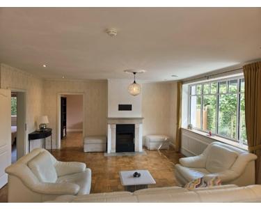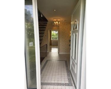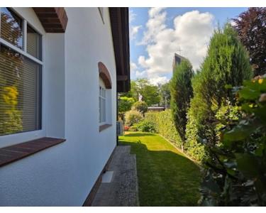 Alle Räume im Ober- und Erdgeschoss haben aufwendige Zierstuckleisten und überwiegend Rosetten für die Deckenleuchten. Das tolle Innenraumkonzept durchzieht sich mit abgestimmten Wand- und Tapetenfarben, teilweise mit aufwendigen Rundbögen an den Sprossenfenstern, neuen Rippenheizkörpern und hochwertigen Wand- und Bodenfliesen. Genießen Sie die großen modernen Fenster, die die Räume von allen Himmelsrichtungen aus mit viel Licht durchfluten. Das bodentiefe Fenster im Esszimmer mit Terrassentür liefert einen Blick auf die glasüberdachte Terrasse mit Rundung und in den liebevoll gestalteten Garten mit den vielen bunt blühenden und duftenden Blumen, Pflanzen und Bäumen. Von diesem wunderschönen Platz werden Sie sich nicht wieder erheben wollen! Und in den kälteren Monaten entspannen Sie im Wohnzimmer vor dem knisternden Kaminfeuer und genießen die angenehme wohltuende Wärme.