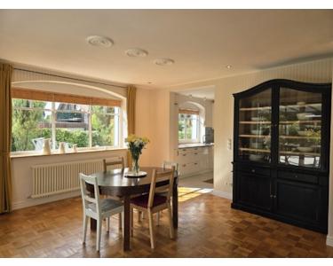 Der Hauptwohnbereich befindet sich praktischerweise auf nur einer Ebene im Erdgeschoss - mühsames Treppensteigen entfällt. Die Bodenbeläge im Wohnbereich, Ess- und Arbeitszimmer bestehen aus hochwertigem Echtholzeichenparket. Aus Eichenechtholz sind auch die Fensterbretter sowie der Abschluss der Brüstung in der Galerie im Obergeschoss.