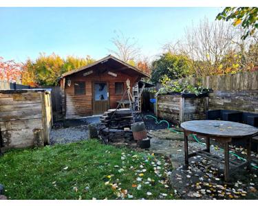 - Garten mit Terrasse, Gartenhaus, Grillplatz und Außenpool
