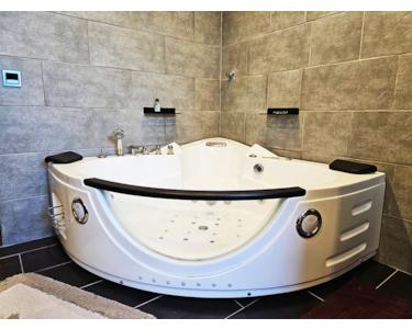 Erdgeschoss: Zwei Zimmer, Flur, WC, Bad (mit Whirlpool und Dusche)