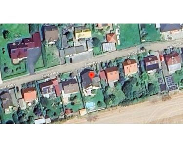 Das Grundstück ist 677 m² groß und liegt an einer sehr ruhigen Anliegerstr (ca. 10 Autos am Tag) und endet an einem Feld an dem sich ein Wald anschließt. Somit vom Grundstück unverbaute Sicht in die Natur. Alle Wege sind mit braunen, ökolog. Pflaster belegt.