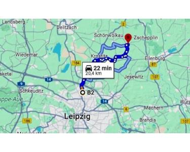 Nach Eilenburg sind es ca. 6 km und ca. 10 Minuten Fahrzeit.