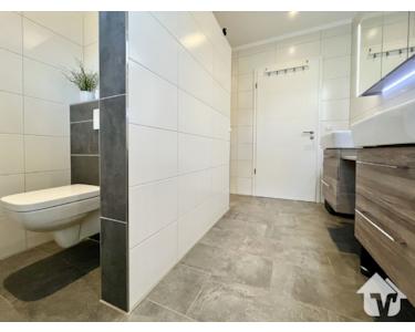 Die separate, hochwertige Küche ist ein echtes Highlight. Sie überzeugt nicht nur durch ihre Ausstattung, sondern auch durch den direkten Zugang zur Terrasse – ideal für das Frühstück im Freien oder den Grillabend mit Freunden. Der angrenzende Hauswirtschaftsraum ist clever durchdacht: Neben viel Stauraum und einem separaten Außenzugang vom Stellplatz verfügt er über eine zusätzliche Küchenzeile mit Waschbecken, die sich hervorragend als kleine „Back-up-Küche“ eignet.