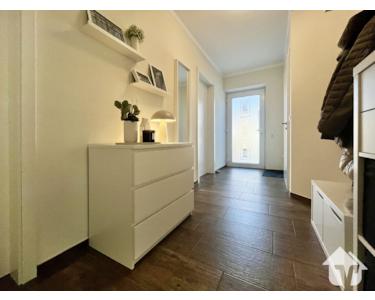 Der durchdacht geschnittene Grundriss bietet ca. 101 m² Wohnfläche und schafft ideale Voraussetzungen für Paare, kleine Familien oder Menschen, die sich räumlich verkleinern möchten, aber auf Qualität und Wohnkomfort nicht verzichten wollen. Vom zentralen Flur aus erreichen Sie das Gäste-WC, ein flexibel nutzbares Büro, Kinder- oder Gästezimmer sowie das gemütliche Schlafzimmer. Das geschmackvolle Badezimmer mit ebenerdiger Dusche verbindet Komfort mit stilvollem Design.