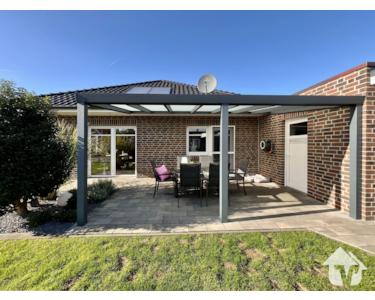 Dieser moderne Bungalow aus dem Baujahr 2019 befindet sich in einem gepflegten Neubaugebiet von Dohren und überzeugt mit klarer Architektur, hochwertigen Ausstattungsdetails und einer angenehm ruhigen Lage. Hier wohnen Sie auf einer Ebene – komfortabel, zeitgemäß und mit dem gewissen Extra an Lebensqualität.