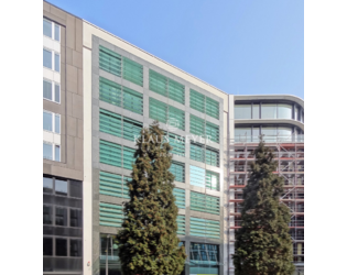 Das 8-geschossige Büro- und Geschäftshaus wurde im Jahr 2001 fertiggestellt und genügt selbst hohen Ansprüchen an modere Architektur. Ein markantes Gestaltungselement sind die außen-liegenden und beweglichen Sonnenschutzglas-Lamellen.
