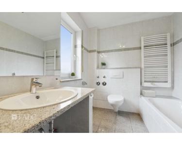Zurück im Flur gelangen Sie rechter Hand in die helle Küche. Direkt nebenan erwartet Sie das moderne Tageslichtbad. Es ist ausgestattet mit einer Badewanne, einer Dusche, einem WC, einem Handtuchwärmer und einem Waschbecken – hier beginnt jeder Tag angenehm!