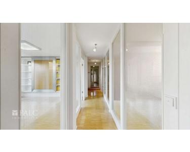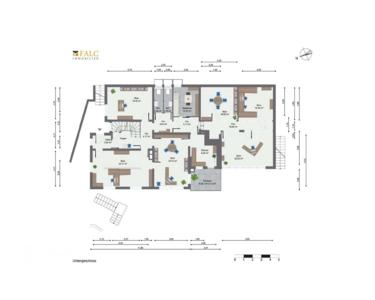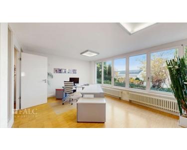 Das separat zugängliche Untergeschoss (bisher als Büro genutzt) verfügt über sieben helle, freundliche Räume, eine Teeküche, zwei separate WCs und eine kleine Terrasse. Dieser Bereich ist flexibel nutzbar, lässt sich leicht nach eigenen Wünschen anpassen oder kann zur Generierung zusätzlicher Einnahmen vermietet werden.