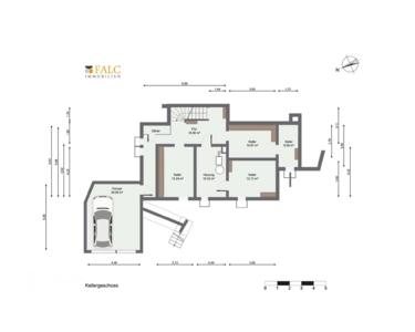 Das Kellergeschoss bietet vier Kellerräume, einen Heizungsraum und eine Garage mit elektrischem Torantrieb, die direkt und witterungsgeschützt über den Keller zu erreichen ist. Weitere Parkmöglichkeiten stehen vor dem Haus in der Straße zur Verfügung.