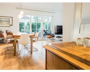 Vier Zimmer, eine Terrasse mit Südausrichtung und der Blick ins Grüne schaffen ein angenehmes Wohnumfeld. Der großzügige Wohn- und Essbereich mit offener Küche bildet das Herzstück der Wohnung. Parkettboden, bodentiefe Fenster und der direkte Zugang zur Terrasse sorgen für eine harmonische Atmosphäre. Drei weitere Zimmer eignen sich flexibel als Schlaf-, Arbeits- oder Gästezimmer. Zwei moderne Bäder, eines mit Wanne und Dusche, das andere mit Dusche, ergänzen das außergewöhnliche Angebot. Zur Ausstattung gehören ein barrierefreier Zugang sowie eine Alarmanlage. Ein Kellerraum und ein Tiefgaragenstellplatz stehen ebenfalls zur Verfügung. Der anliegende Garten ergänzt das Angebot und bietet zusätzliche Aufenthaltsmöglichkeiten im Freien. Die Wohnung wird derzeit noch von den Eigentümern bewohnt und wird nach Absprache bezugsfrei.