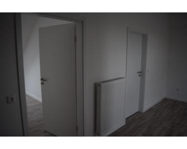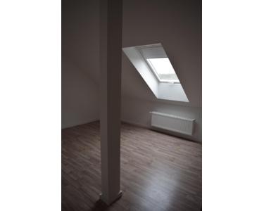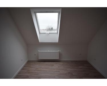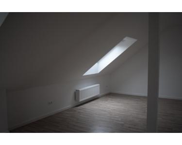 66,6 qm reine Fläche, 55,6 nach Wohnflächenberechnung (Dachschräge), 2 gleiche Räume plus ein etwas größerer davor (dort Anschlüsse für eine mögliche kleine Küchenzeile), großes Bad, Nord-Balkon mit nutzbar.
