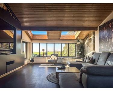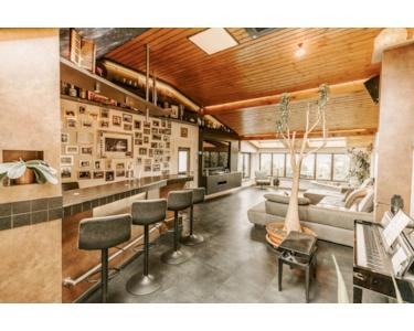 Ein absolutes Highlight ist der 2020 modernisierte Anbau mit seinen imposanten Holzdecken, einer stilvollen Bar und erneut wunderschönem Panoramablick. Dieser Bereich bietet viel Platz für einen weiteren Wohn- oder Loungebereich und begeistert durch seine hochwertige Ausstattung und die einmalige Atmosphäre, perfekt um als Familie zusammenzukommen oder zum Gäste empfangen.