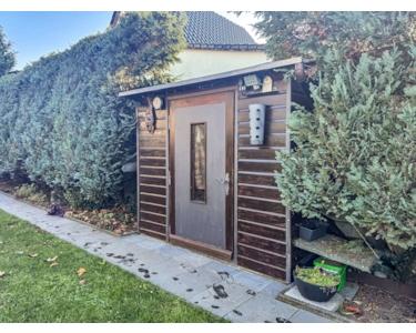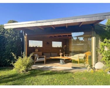 Ein weiteres Highlight: Das 2024 errichtete, stilvolle Gartenhaus bietet den perfekten Rückzugsort für gemütliche Abende bei einem Glas Wein. Zusätzlich gibt es einen Schuppen für Geräte und Stauraum.