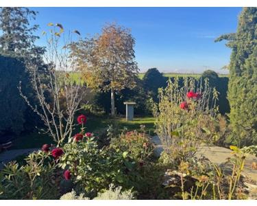 Der Garten ist ein kleines Paradies: liebevoll angelegt und mit herrlicher Terrasse mit integriertem Pool sowie unverbaubarem Blick über die angrenzenden Felder. Auch hier genießen Sie traumhafte Sonnenuntergänge und eine herrliche Weitsicht.