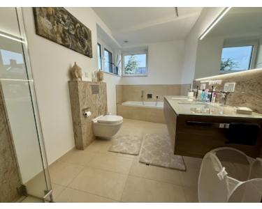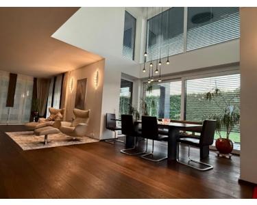 Die Immobilie ist durchweg hochwertig erstellt mit mit Echtholz- oder Natursteinböden ausgestattet. Das gesamte Haus wird durch eine Gaszentralheizung (Einbau 2023) mit Fußbodenheizung erwärmt. Zusätzlich ist eine Lüftungsanlage verbaut, welche durchweg für kontrollierte Frischluftzufuhr sorgt. Im Jahr 2025 wurde eine PV-Anlage mit 24 kWp und 14 kW-Speicher eingebaut, welche durch eine E-Ladesäule optimal ergänzt wird. Der Garten bietet viele Rückzugsmöglichkeiten und durch eine 3,5 m hohe Hecke absolute Privatsphäre. Eine Videoüberwachung sorgt zusätzlich für Sicherheit.