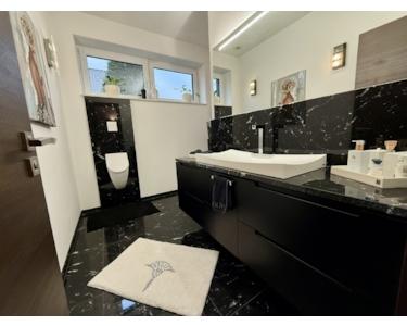 + Stilvolle Badezimmer mit bodengleichen Duschen, großformatigen Fliesen und wertiger Sanitärausstattung