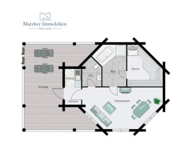 + Freistehendes Saunahaus mit Küchenzeile, Ruheraum, hochwertiger Sauna, separater Dusche und Tauchbecken