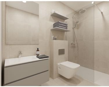 Hier entstehen 95 moderne Wohnungen mit 2 oder 3 Schlafzimmern und 2 Bädern und mit hochwertiger Ausstattung in einer sehr schönen abgeschlossenen Anlage mit Gemeinschaftspool und Kinderspielplatz.