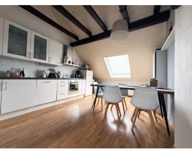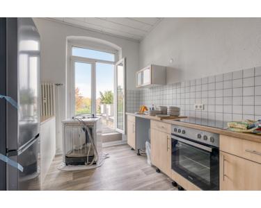 Wohnung 3 im Dachgeschoss, Wohnung III (ca. 54 m²): Zwei Zimmer, Küche (mit Essbereich), Diele, Bad