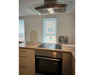 - Einbauküche mit Backofen und Geschirrspülmaschine und Dunstabzugshaube