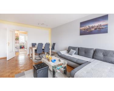 Abgerundet wird das Platzangebot durch ein hell gefliestes Vollbad mit Fenster. Während im Wohnzimmer ein Echtholzparkettfussboden verlegt wurde, sind Badezimmer und Küche pflegeleicht gefliest und der Rest der Wohnung mit einem hellen Laminatfussboden ausgestattet.