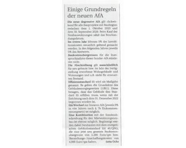 Hohe Steuervorteile durch Neubauabschreibungen für Vermieter möglich !