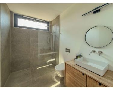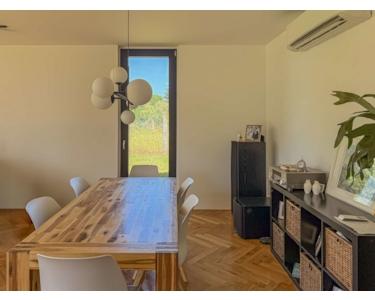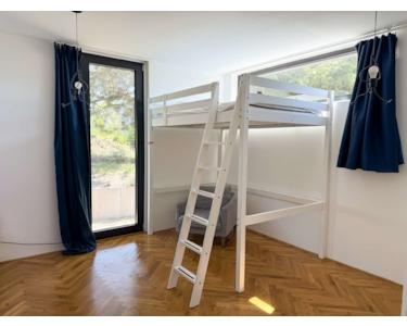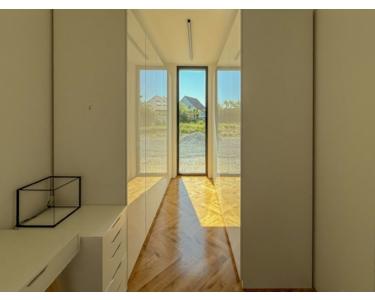 Dieses architektonisch besondere Einfamilienhaus wurde im Jahr 2020 in massiver Bauweise unter Verwendung hochwertiger Betonfertigteile errichtet. Es erstreckt sich vollständig über eine Ebene – nur der Dachboden ist über eine Treppe erreichbar.