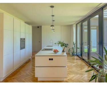 Die hochwertige Küche ist ein echtes Highlight – sie ist im Kaufpreis enthalten und begeistert mit erstklassigen Geräten: darunter ein Siemens-Induktionskochfeld mit integriertem Dunstabzug sowie ein moderner Herd von Bosch. Ein Ort, der sowohl Hobbyköche als auch Designliebhaber überzeugt.