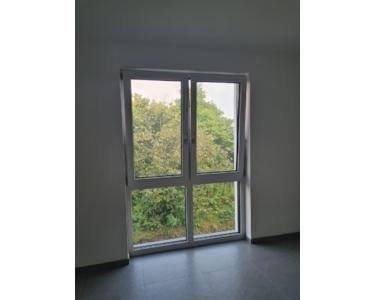 Das Schlafzimmer bietet ausreichend Platz um einen großen Kleiderschrank und ein Bett zu stellen. Das bodentiefe Fenster sorgt zudem für einen ausreichenden Lichteinfall.