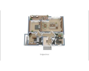 befindet sich neben dem Wohnzimmer. Zwei Schlafzimmer, ein Gäste-WC sowie ein Tageslichtbad