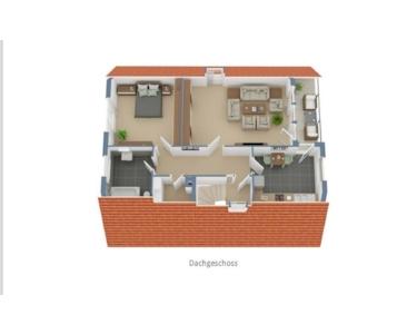 Die Wohnung im Dachgeschoss verfügt über ein helles Wohnzimmer mit Kaminofenanschluss und