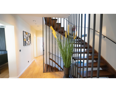 Sanitäranlagen und der Elektroinstallation – inklusive moderner Smart-Home-Technologie. Die Fußbodenheizung im Erdgeschoss und Obergeschoss sorgt für