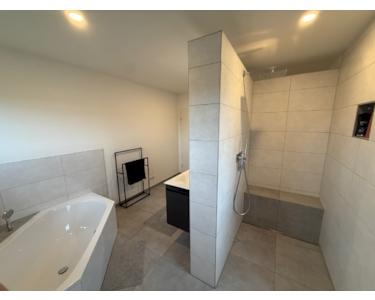 Das Haus verfügt über zwei stilvolle Bäder. Das Elternbad überzeugt mit einer großzügigen Badewanne und einer separaten Dusche, während das Kinderbad mit einer Dusche ausgestattet ist.