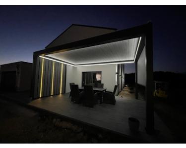 - Terrasse mit elektrischem Lamellendach mit Seitenmarkise