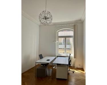 Neben den hohen Decken, lichtdurchflutet Räumen, Stuck, und tollen Parkettböden darfst Du Dich an dem gelungenen Mix aus alt und neu erfreuen, der sich in allen Besprechungsräumen, dem Konferenzraum im Wintergarten, aber auch der Küche spiegelt.