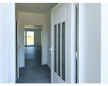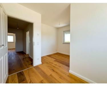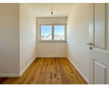 Im gesamten Haus sorgt eine angenehme Fußbodenheizung für wohlige Wärme, während elektrische Jalousien zusätzlichen Komfort und Schutz vor Sonne bieten. Über die Treppe erreichen Sie das Obergeschoss, das mit einem zentralen Flur beginnt, von dem alle Räume abgehen. Das großzügige Schlafzimmer mit angrenzender Ankleide bildet hier eine komfortable Rückzugsoase. Ein weiterer Raum eignet sich ideal als Kinder- oder Arbeitszimmer. Das Tageslicht-Badezimmer ist modern ausgestattet und bietet sowohl eine Dusche als auch eine Badewanne. Ein zusätzlicher Abstellraum schafft praktischen Stauraum auf dieser Ebene.