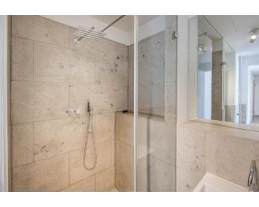 • Elegantes Duschbad mit edlen Natursteinfliesen