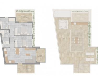 Wählen Sie zwischen Bungalows im Erdgeschoss mit großzügigen Terrassen oder Einheiten im ersten Stock mit privaten Terrassen und Solariums, mit zwei oder drei Schlafzimmern mit Einbauschränken und zwei Badezimmern im zeitgenössischen Stil. Darüber hinaus bieten sie eine Veranda und große Terrassen, ideal, um das mediterrane Klima in Privatsphäre zu genießen. Jedes Solarium verfügt über eine Pergola, einen Grillplatz und ein verstärktes Dach, das sich perfekt für die Installation eines Whirlpools eignet. Alle Häuser verfügen über einen eigenen Parkplatz und eine voll installierte Klimaanlage, die das ganze Jahr über für Komfort sorgt.