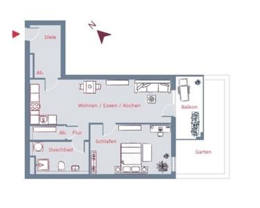 Der offene Wohn- und Essbereich mit bodentiefen Fenstern sorgt für viel Licht und ein angenehmes Wohngefühl. Von hier aus gelangen Sie auf einen Südbalkon mit einem kleinen Garten, der zum Entspannen einlädt.