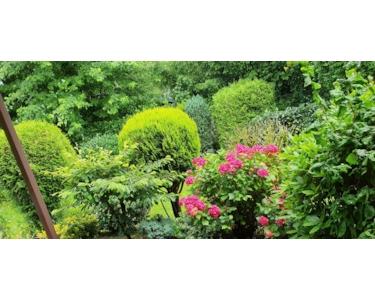 Direktausblick in den traumhaft schönen, grünen Garten.