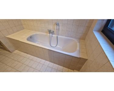 Steingutfliesen in Deckenhöhe, Badewanne, Dusche,